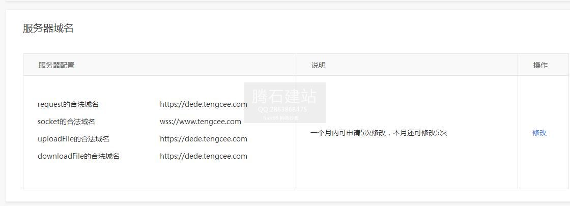 然后在“开发设置”向下有个“服务器域名”,全部填写自己要对接的网站的域名,另外下边的webview可以根据自己实际情况考虑要不要配置。