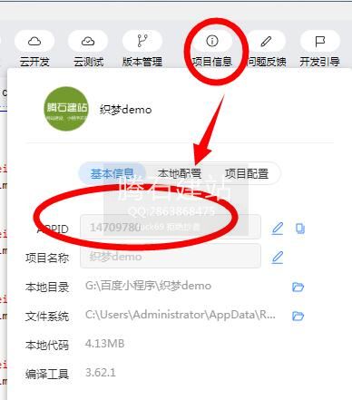 (3)进入小程序之后,点击右上角“项目信息”--->修改appid为您的小程序appid