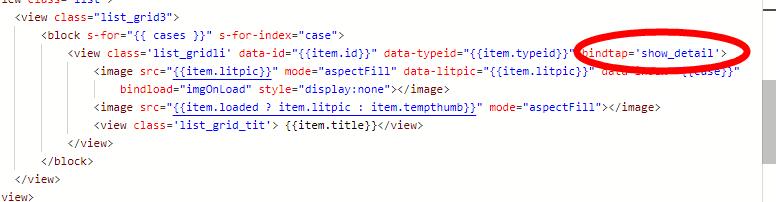 打开对应的swan页面,每个点击事件都是通过bindtap触发的,所以想修改对应事件,首页去swan找到对应的bindtap事件,比如查看新闻的 bindtap='show_detail'
